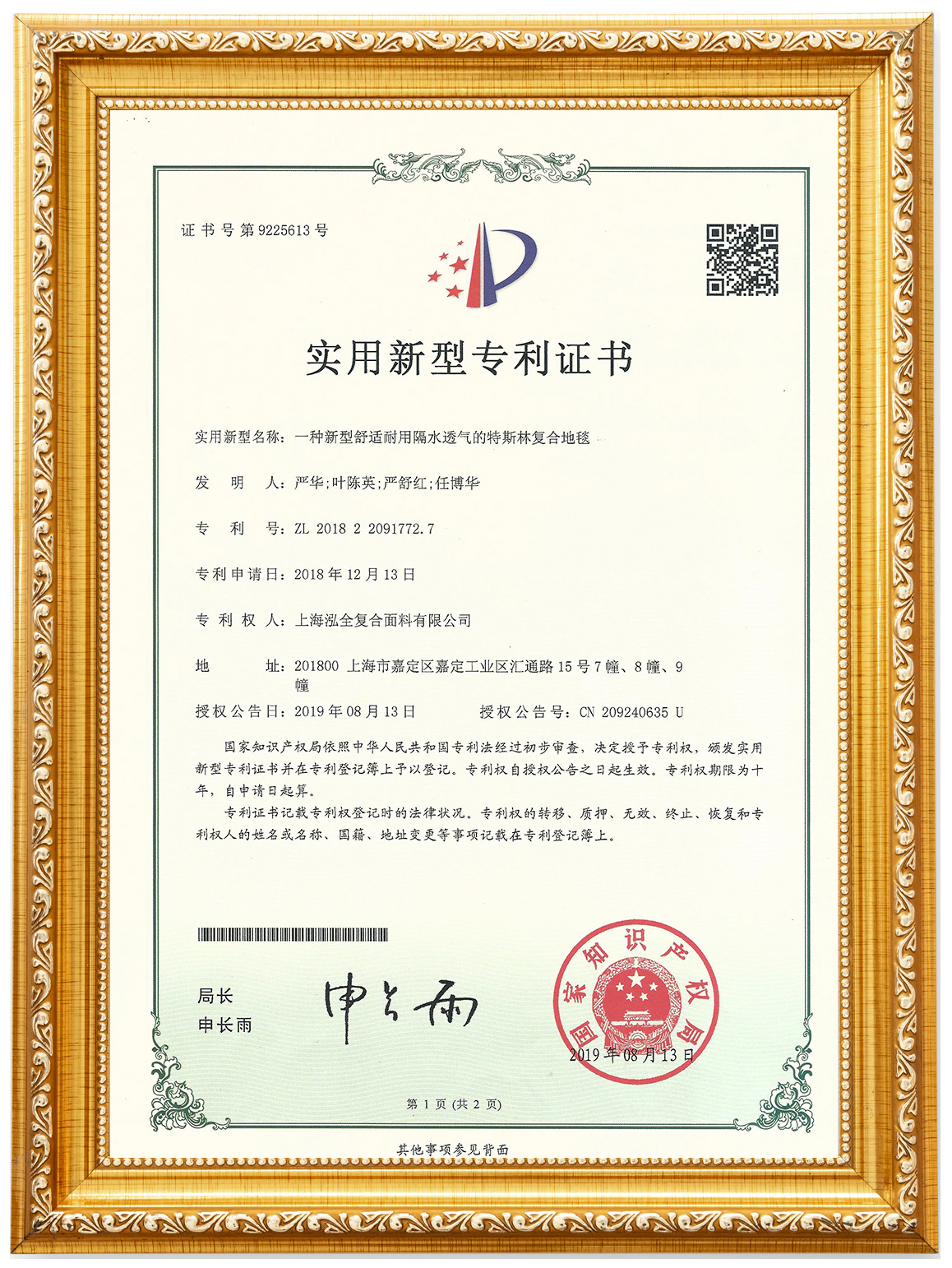 上海泓全復合面料有限公司始創(chuàng)于2009年,是集研發(fā)、設計、生產、銷售、服務為一體的織布復合加工生產型企業(yè)。專業(yè)從事家紡面料、服裝面料、箱包面料、地毯面料和醫(yī)療護理、充氣產品、家居用品、廣告布等各種面料的復合。公司目前生產的成品涵蓋家紡系列、家居系列、老年人和嬰幼兒護理系列、醫(yī)療護理系列等。公司坐落于上海市嘉定工業(yè)區(qū),西鄰昆山,北鄰太倉,交通便利,廠房面積達10000多平方米。